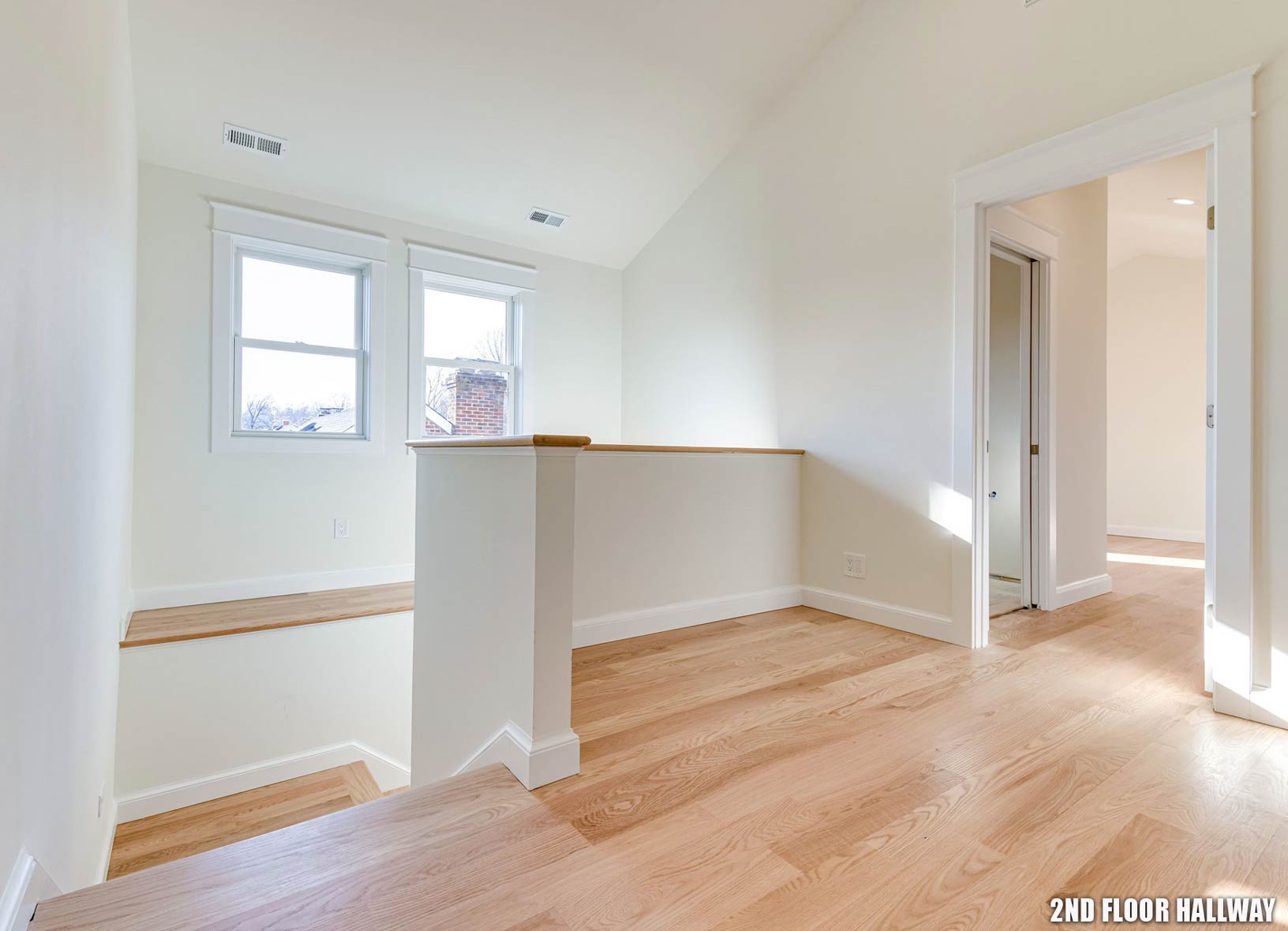 SECOND FLOOR: The second floor has 3 bedrooms all with vaulted ceilings. Two bedrooms have abundant closet space, their own bathroom with a tub/shower for the family with little ones. The master bedroom boasts 13ft vaulted ceilings, area for a king size bed and night tables, a large sitting/lounging area, large walk-in closet, and a luxury en suite with double sink vanity, free standing soaking tub, separate frameless shower enclosure and dual flush toilet. The stairway and hallway are light filled: morning light comes from a skylight through frosted glass double doors which doubles as attic access on the east side and afternoon light via a set of double windows on the west side. Rounding out the second floor is a large, oversized laundry room complete with its own washer and dryer (stacked or horizontal), counter, optional laundry sink, and enough room for hanging delicates to dry. A high efficiency on demand hot water heater located in this room supplies endless hot water to all second-floor fixtures.
